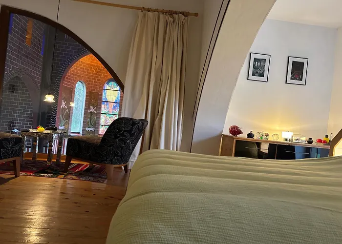 La La Chapelle De Verre, Un Lieu Unique Au Monde está amueblada con un sofá, ventanas insonorizadas. Los huéspedes también pueden beneficiarse de TV y TV de pantalla plana con canales vía satélite. Los cuartos de baño disponen de una bañera y una ducha, secador de pelo y toallas.